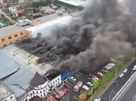 მოსკოვის მახლობლად, პუშკინოში, ავტომობილების ზეთების მწარმოებელი ქარხნის საწყობი მოულოდნელად და „სასიამოვნოდ“ აგიზგიზდა.