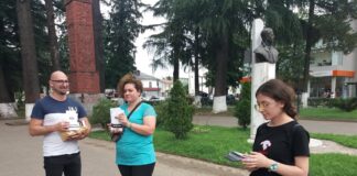 ზუგდიდში ფლაერები წარწერით „გახარია წადი!“ დაარიგეს