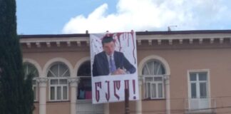 გახარიას სისხლიანი ბანერი წარწერით ,,წადი,, ზუგდიდში გამოფინეს [Video]