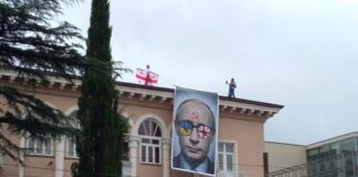 პატრიოტთა ალიანსის შეხვედრის პარალელურად სახურავზე ანტისაოკუპაციო ბანერი გამოფინეს