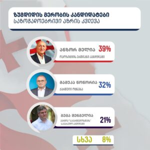 ამ კვლევის თანახმად, ანზორ მელიას კანდიდატურას მერის პოსტზე მხარს უჭერს გამოკითხულთა 39%, ხოლო “ოცნების” კანდიდატს მამუკა წოწერიას გამოკითხულთა 32%.