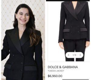 ალიევთან შეხვედრაზე, მარიამ ქვრივიშვილს დოლჩე გაბანას პიჯაკი აცვია, რომელიც 6950 დოლარი ღირს”, – “ალია”.