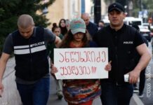 აქტივისტი პლაკატით „ანწუხელიძე უკვდავია“ 5000 ლარით დააჯარიმეს