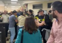 პოლიცია და მანდატურები საქალაქო სასამართლოს დერეფანს მოქალაქეებს და მედიას ძალის გამოყენებით ატოვებინებენ