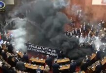 სერბეთის პარლამენტში კვამლის ყუმბარები და ცრემლმდენი გაზი ისროლეს – დაშავდა 2 დეპუტატი