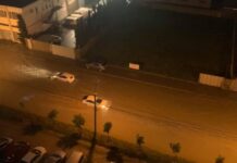 თბილისში ძლიერი წვიმის გამო ქუჩები ისევ დაიტბორა. განსაკუთრებული პრობლემები შეიქმნა დიღომში, მირიან მეფის გამზირზე.